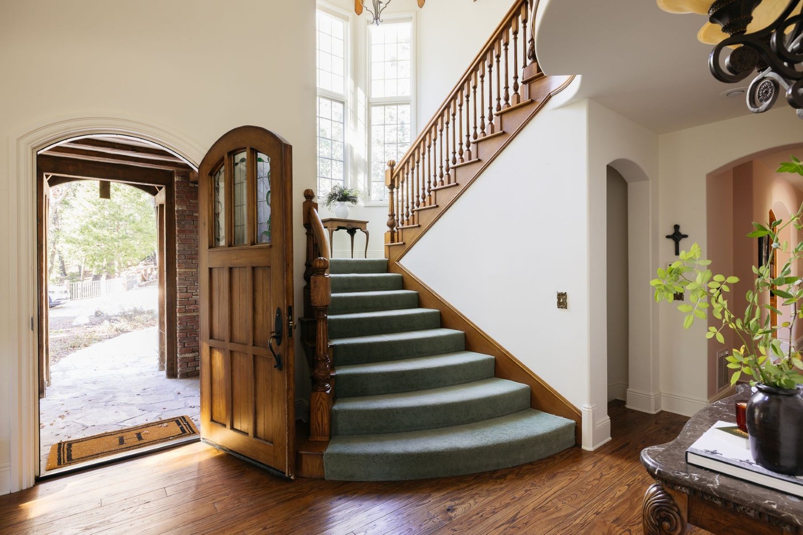 A stunning estate boasting a 3-bedroom main house with two bonus spaces, along with a separate 4-bedroom guest house sited on 1.6+ acres. Every inch of the property reflects a rare devotion to artistry, imagination, and intentional design. Thoughtfully oriented to the south, the residence captures fresh mountain breezes, abundant natural light, and ever-changing forest views, creating a home that feels both alive and deeply grounded in nature. The 6,000+ square-foot main residence is defined by soaring ceilings, intricate hand-crafted woodwork, graceful arched doorways, and seven fireplaces that add warmth and character throughout. A grand living room anchors the home, where diamond-paned windows frame cinematic mountain scenery that transforms with the seasons. Sunlight filters through the trees by day, while evenings glow with firelight and forest silhouettes. Designed for both refined entertaining and quiet retreat, the home features a private library, an intimate wine room, and a gourmet kitchen equipped with a Viking range and double ovens—ideal for the serious chef or hosting memorable gatherings. The layout flows effortlessly, blending elegance and comfort at every turn. The main residence includes two beautifully appointed guest bedrooms plus a luxurious primary suite, each offering privacy, warmth, and serene woodland views. A uniquely designed media room and additional custom spaces throughout the home showcase a level of creativity rarely found, with no two rooms alike. Expansive windows invite the forest indoors, ensuring a strong connection to the natural surroundings. Two generous decks overlook the forest canopy, perfect for morning coffee, entertaining, or evenings under the stars. Above the garage, a massive entertainment hall with a stage, professional sound system, and private entrance offers limitless possibilities. Built in 2002 by acclaimed builder Ron Dolman, known for crafting residences for Disney executives, this iconic estate stands as an enduring architectural work of art.