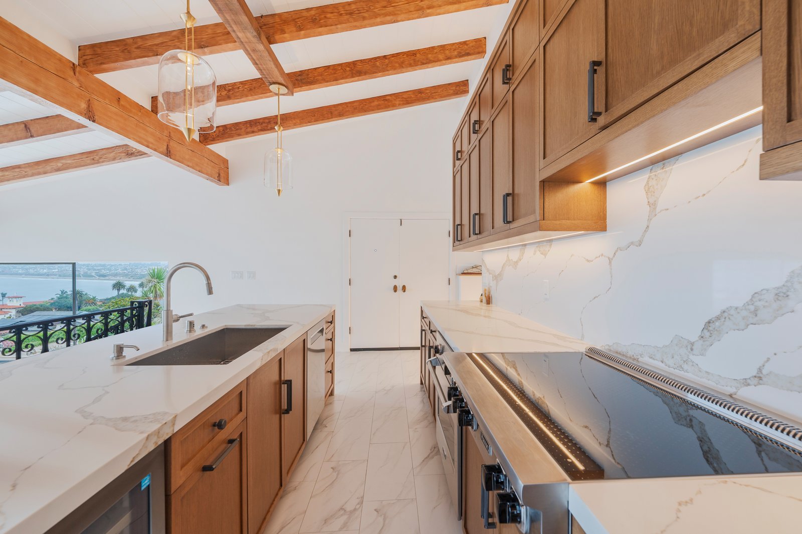 Introducing this stunning Ocean View home in coveted Palos Verdes Estates. Perched above the coastline with breathtaking Queen’s Necklace and ocean views, this beautifully updated 4-bedroom, 3-bath home offers the perfect blend of modern comfort and coastal elegance showcasing exquisite finishes throughout. Extensively renovated, the home features new upgraded electrical, new copper plumbing, new roof, an updated kitchen with top of the line appliances and a striking kitchen island comprised of calacatta thunder with veins that glow with the flick of a switch. The open-concept kitchen flows seamlessly into the light-filled living room, where floor-to-ceiling glass windows frame sweeping ocean vistas. Originally designed with a family room, the home now boasts a spacious primary suite featuring incredible panoramic views — the ideal retreat to enjoy sunsets over the Pacific. Thoughtful upgrades include permitted direct garage access and a conveniently relocated interior laundry area. With approximately 2,100 sq. ft. of living space, every detail has been curated for comfort, function, and style. Perfectly situated in a premier location on Via Almar, this home is just a short stroll to Malaga Cove Plaza, scenic walking trails, and the best of Palos Verdes living. A rare opportunity to own a turn-key coastal gem in one of the most desirable neighborhoods on the Peninsula. Come see it now before it’s sold.